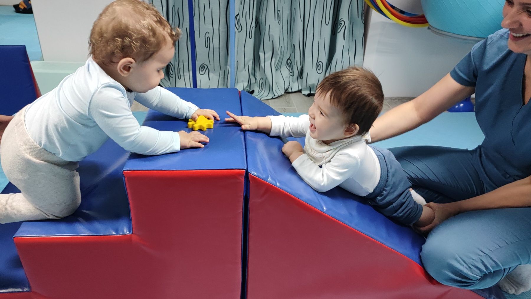 Razvojna gimnastika za bebe od tri do dvanaest meseci podstiče pravilan motorički razvoj, položaj tela i koordinaciju. Vežbe su prilagođene uzrastu, izvode se uz stručni nadzor i uključuju roditelje, čime jačaju vezu roditelj–dete i sigurnost u rukovanju bebom.